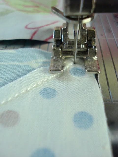 I sew all I can. What do I do? Lift my foot? NO!! Grab a scrap of fabric and keep right on sewing in to it.